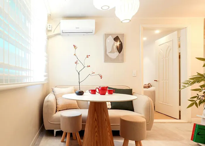 アパートは韓国礼節文化院から150メートルの距離で、地下鉄弘大入口駅すぐ近くの場所にあります。 この寝室1室のアパートは北村韓屋村から7キロメートル離れた所です。